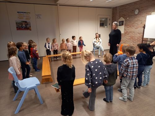 Maandag muziekdag! Wat een heerlijkheid. De kinderen genieten van deze lessen! Annemarieke is enthousiast, houdt het tempo erin, heeft leuke liedjes, doet allerlei leuke muzikale oefeningen en spelletjes en echt iedereen doet mee!