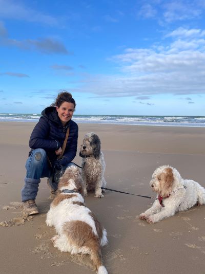 In mijn vrije tijd ben ik veel te vinden in de tuin, aan de wandel met mijn drie honden en op het hockeyveld.