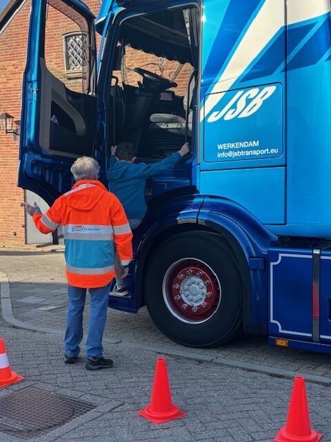 Eerst de theorie in de klas en daarna een vragenblad invullen, In die tijd gingen groepjes kinderen naar de vrachtwagencabine van chauffeur Bram. Achter het stuur kruipen, dat was al een belevenis en dan ervaren dat je echt kinderen die vlak naast of voor de vrachtwagen staan, volledig buiten je gezichtsveld staan.