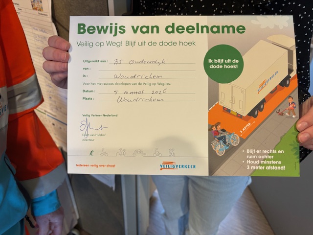 Zeker nu de kinderen in groep 8 naar hun VO-school gaan fietsen en hier misschien vaker mee te maken gaan krijgen, was dit heel leerzaam. Tussendoor werd ook nog even duidelijk gemaakt dat fietsen met oortjes in of koptelefoon op bepaald niet helpend is.