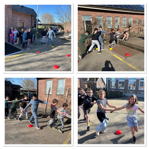 Tijdens de kanjer lessen spelen we regelmatig allerlei rollenspellen, deze week was het tijd voor een buitenactiviteit waarbij de kinderen goed moesten samenwerken. Achteraf in de klas hebben we vooral de samenwerking uitgebreid besproken. Het ging niet om het winnen maar om samen plezier maken.